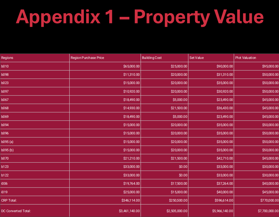 12. All of the aforementioned valuations rely on a 1:10 exchange rate between $CRP and $DC as audited by Vendeka and reported by RDS. (P-003, P-006, P-007)