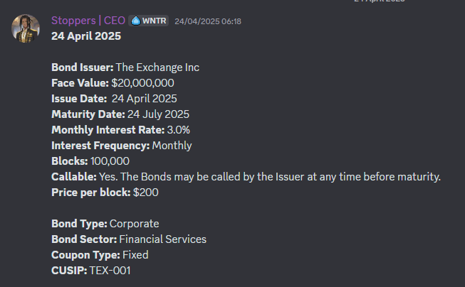 1. On April 24, 2025, The Exchange Inc. issued the "TEX-001" bonds, creating a binding loan contract with a mandatory maturity date of July 24, 2025. The Plaintiffs purchased a combined 2,452 units of these financial securities.