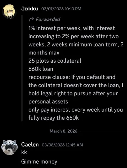 Jakkuwu, through counsel, has petitioned the Court to intervene in [2026] FCR 21. Jakkuwu, through counsel, pleads that a loan contract was signed between them and Defendant MasterCaelen, in which $660,000 was to be transferred to the Defendant in exchange for interest and 25 plots as collateral.